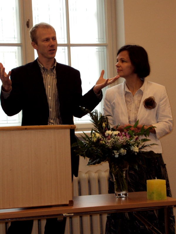 Kustības “Laulāto tikšanās” vadītāji, Baiba un Dainis Stikuti stāstīja par ģimenes ekoloģiju. Un viņos ir vērts ieklausīties, jo ģimenē aug pieci dēli. Stikutu pāris atgādināja, cik svarīgi ir ģimenē dzīvot saskaņā ar Dieva gribu. Mums tika arī atgādināta vienkārša matemātika, ka vairoties nozīmē kļūt vairāk. Tātad ģimenē noteikti jābūt vairāk par diviem bērniem, lai šis princips būtu piepildīts. Kā iedrošinājums bija viņu pašu liecība, ka ar katru nākošo bērnu netika zaudēta ģimenes labklājība, bet gan gluži otrādi – saņemta svētība. Viņu ģimeniskā prezentācija lieliski atklāja, ko mīlestības atmosfērā nozīmē, ka vīrs ir ģimenes galva, bet sieva ir ģimenes sirds. Viņi arī atgādināja, ka kontraceptīvā domāšana ielaiž ģimenē vēl kādu, kas nostājas starp laulātajiem. Ja tiek nogalināts bērns, tad ģimenē tiek ielaists nāves gars. Turpretī dabīgajā ģimenes plānošanā ir vieta lūgšanām, ilgām pēc bērna, atvērtībai uz dzīvību, bērnu svētības saņemšanai.